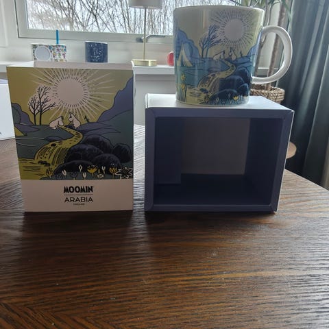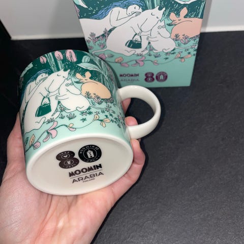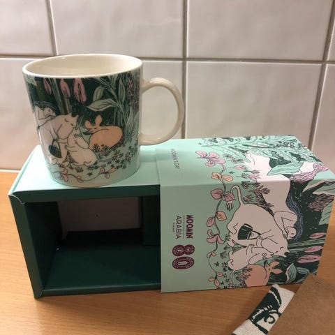 Arabia mugg i porslin med flerfärgat motiv. Muggen levereras i originalförpackning med matchande tryck. Passar för varma och kalla drycker i kök och vardagsrum. Om ni har andra muggar ni söker så hör av er, jag har en del.