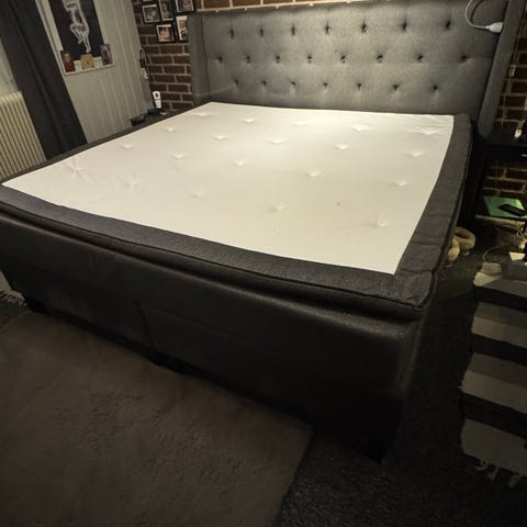 Kingsize sängram med 2st ikea fjädrande sängbottnar. Inköpt i USA. Behövs nya övermadrasser
