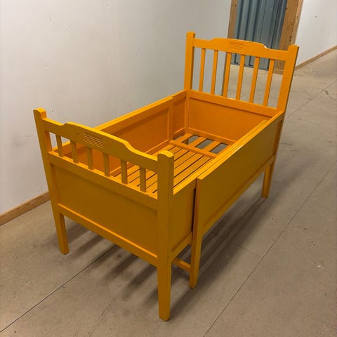 Unik säng målad i vacker gul kulör och har originalfärgen intakt.