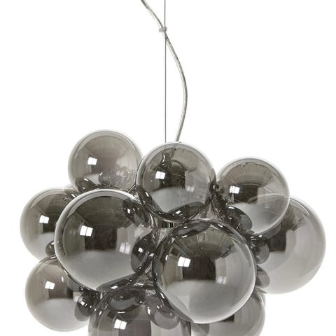 Caboche Plus Media MyLight, pendel formgiven av Patricia Urquiola och Eliana Gerotto för Foscarini. Lampans skärm består av sfärer av transparent polymetylmetakrylat som omsluter den inre skärmen i vitt, satinborstat glas. Den inre skärmen skapar ett trivsamt ljus som reflekteras och sprids genom de kristallika yttre sfärerna. En elegant takkopp i förkromad metall ingår.