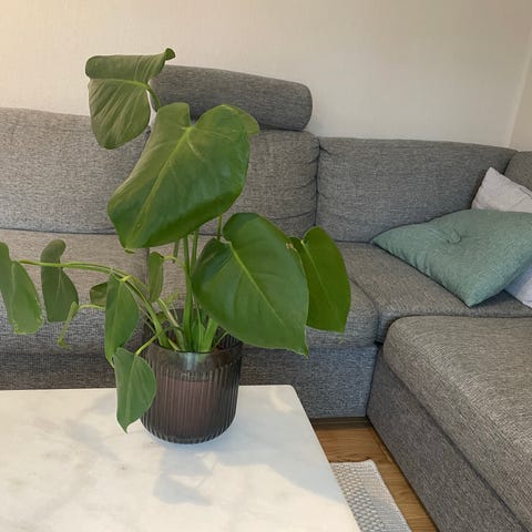 Blandade gröna krukväxter i olika storlekar. Växterna står i olika typer av krukor, både keramiska och metallkrukor. Passar som inomhusväxter i fönster eller på hylla/bänk. Flera plantor med breda gröna blad samt några mindre plantor i separata krukor.