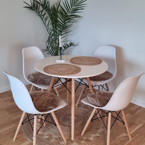 Säljes endast som komplett set (bord + 4 stolar).