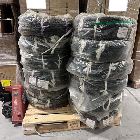 Slangar och däck i storlek 10x2.5 i svart gummi. Passar elscootrar eller liknande med motsvarande hjuldimension. Satsen innehåller flera innerslangar samt några kompletta däck med olika slitbanemönster. Kontrollera storlek och ventiltyp mot ditt fordon innan montering.