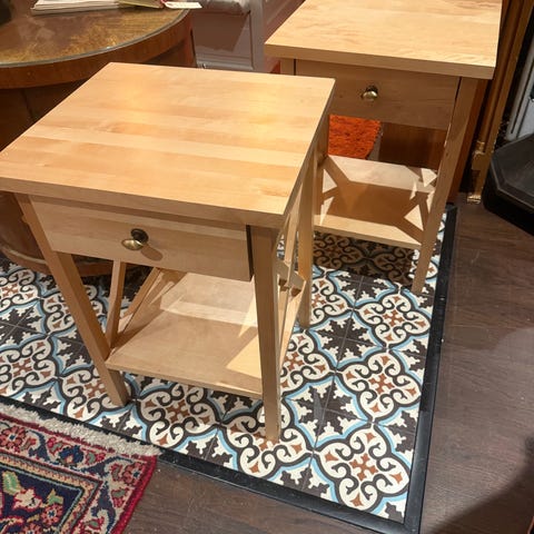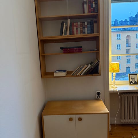 Två vägghängda sängbord nattduksbord