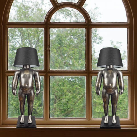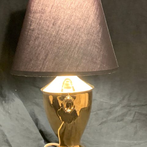 Den medföljande lampskärmen i svart siden har en elegant guldinsida som reflekterar ljuset varmt och stämningsfullt.