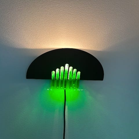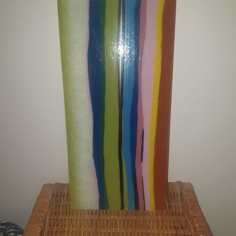 Snygg och dekorativ vägglampa i strukturerat glas med färgade ränder.