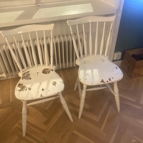 Vi har köpt nya pinnstolar och behöver inte längre dessa tre.