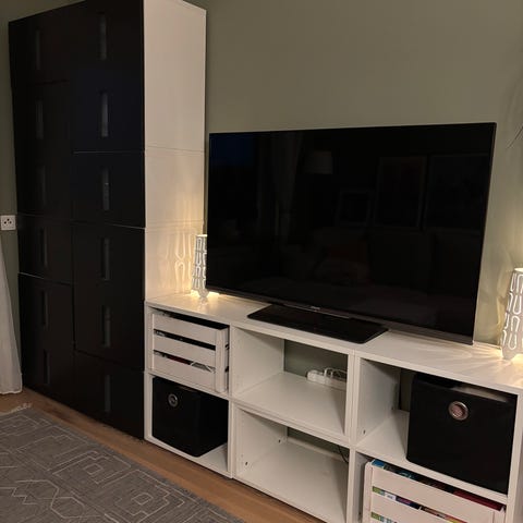 En mycket fin tv-möbel från Mio i absolut nyskick säljes. Hydraulisk lucka. Ca mått: b:140. h: 45. d:35.
