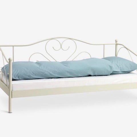 Materialet i sängstommen är metall och i väldigt fint skick.