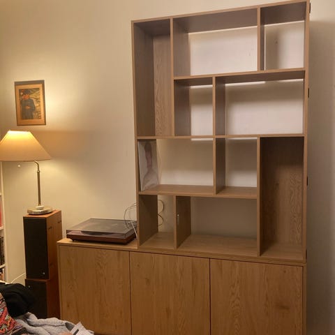 Massiv björk. Flyttbara hyllor.