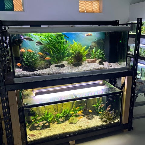 Båda akvarierna, det andra är ett 540L och ställning kan köpas för 8900 kr för allt inklusive den demonterbara kraftiga metallställningen.