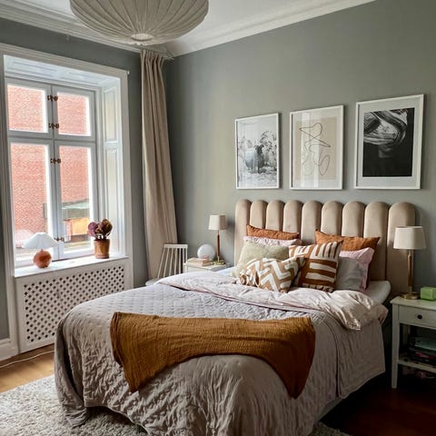 Sänggavel i fint ljusbeige linne tyg, 180 cm. Djur och rökfritt hem.