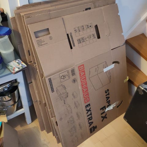 Flyttkartonger skänkes.