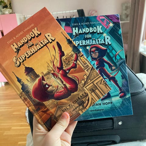 Handbok för superhjältar 1-4 samt familjen Knyckertz. Säljes som ett paket. Pris: 150kr