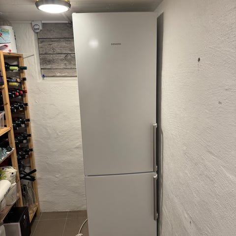 Fristående kombi kyl frys i. Kylskåpet har överdel med hyllplan och dörrhyllor (ej synliga på bild). Alla hyllplan hela. Frysen har också hela lådor.