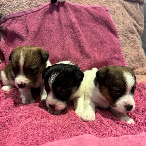 4 bedårande valpar 3 tikar 1 hane födda den 25/1 letar nya hem, valparna är 4 veckor gamla och blir leverans klara den 27/3 då är dom 8 veckor .