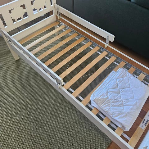 Passar som övergångssäng mellan spjälsäng och fullstor säng för barn.