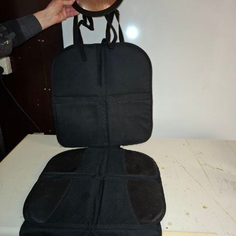 “BabyDan bilspegel för bakåtvänd bilbarnstol. Spegeln monteras på nackstödet i baksätet med justerbara remmar. Rund spegelyta med svart ram som gör det möjligt för föraren eller passageraren fram att se barnet i en bakåtvänd bilbarnstol via backspegeln. Passar de flesta bilsäten med nackstöd.”