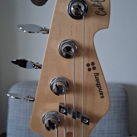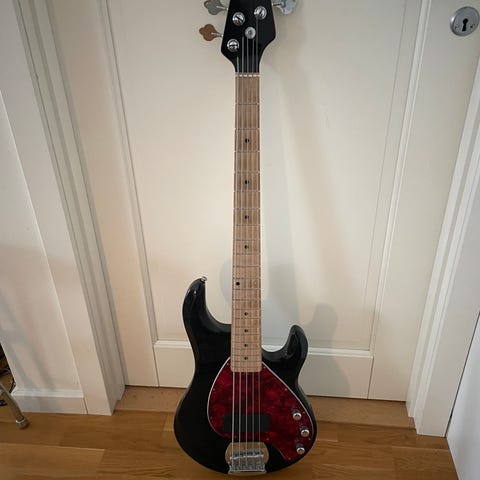 Otrolig bas. Spelar verkligen hur bra som helst. Denna har kroppen precis som en Fender P-bass. De fick ändra om kroppen ett par år senare. Inbyggd preamp. Kommer i original softcase. Serienummer 6996.