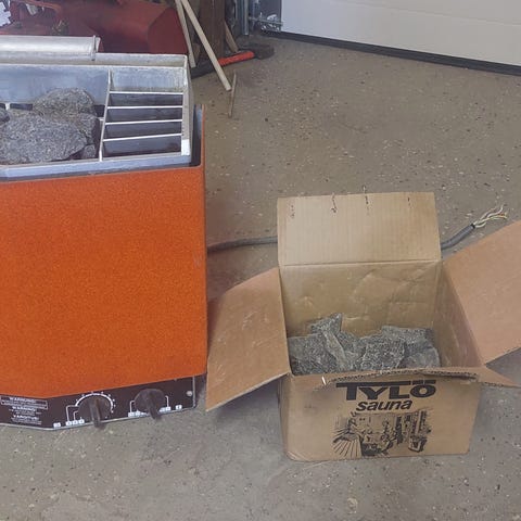 Bastuaggregat i äldre skick. Har inte testat funktionen själv men enligt tidigare ägare av huset ska den fungera