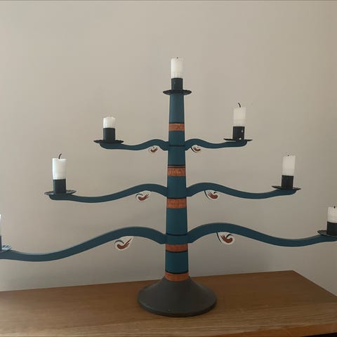Säljer en unik och iögonfallande ljusstake i skulptural design med knutad form i vitt. En riktig blickfångare som passar lika bra som inredningsdetalj hela året!