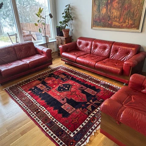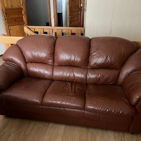 Skön soffgrupp i skinn. En soffa och två fåtöljer