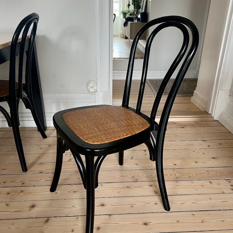 Säljer 4 st IKEA ÖGLA/Öglan stolar i svart. Stabilt bruksskick. Finns skav/färgsläpp på övre delen av ryggstöden (se bilder), i övrigt normalt slitage. Säljes helst som paket. Avhämtning.