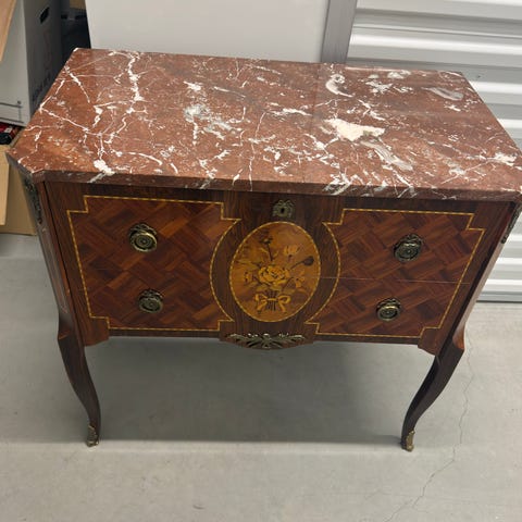 Stor fin retro gustaviansk byrå med 3 lådor i mahogny & intarsia skiva i marmor