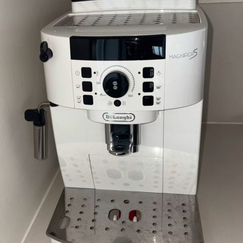 De'Longhi Magnifica S är en helautomatisk kaffemaskin som maler bönorna direkt före bryggning. Den har en integrerad mjölkskummare för att enkelt tillaga cappuccino och latte. Maskinen har justerbar kaffestyrka och temperatur, samt en avtagbar vattentank för enkel påfyllning och rengöring. Den kompakta designen gör att den passar bra i de flesta kök. observera den är 1 år gammal jag har använt väldigt sparsamt . Jag har köpt den från Power . För mer information. Ni kan gärna kolla Delonghi ECAM22.112.B Magnifica S kaffemaskin