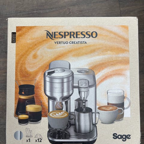 Nespresso Creatista Plus espressomaskin i rostfritt stål. Maskinen använder Nespresso-kapslar för att brygga espresso och kaffe. Utrustad med ångstav för mjölkskumning och separat mjölkkanna. Passar för tillredning av espresso, lungo och mjölkbaserade kaffedrycker som cappuccino och latte. Maskinen har droppbricka och uppsamlingsbehållare för kapslar samt reglage på ovansidan för val av dryck och inställningar.