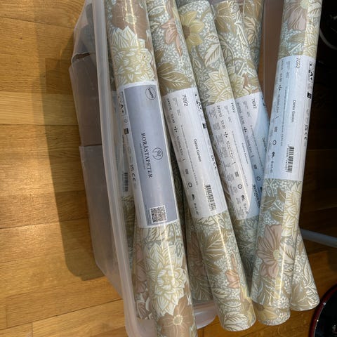 Fantastiskt söt tapet med regnbågar för barnrummet. Kom dessvärre aldrig till användning hos oss. Totalt 4 rullar tapet, samtliga med samma batchnummer. Mönstret har utgått.
