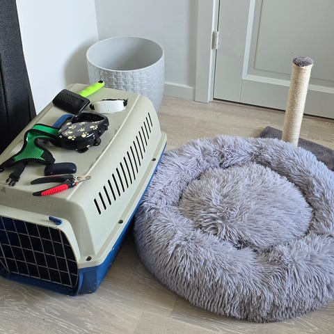 Kattutrustning paket klösbräda transportväska vattenskål kattbädd tillbehör