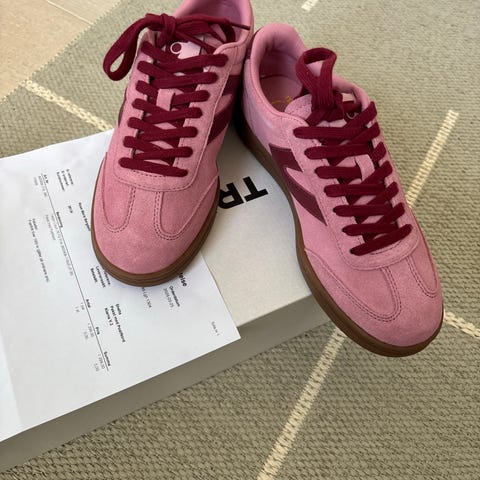Väldigt lite använda sneakers i perfekt skick. Röda med mockadetaljer. Skon i äkta läder.