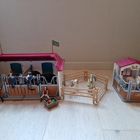 Stall med schleichhästar och tillbehör