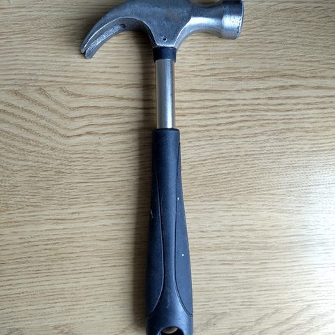 Meec Tools klohammare med metallhuvud och svart gummihandtag. Hammaren har rak slagyta och klo för utdragning av spik. Passar för allmänna snickeri- och hemmafixarbeten där en standardhammare behövs.