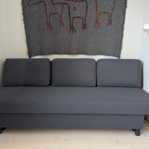 En praktisk bäddsoffa Älvdalen från IKEA med förvaring under. Bäddas lätt ut till ca 130cm säng.