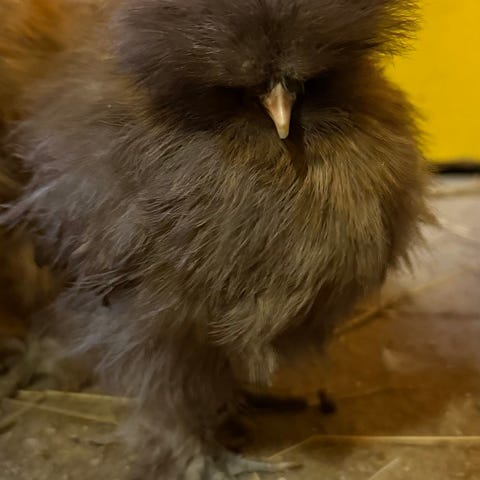 Tre hönor och en tupp. 3 veckor gamla.