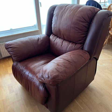 Har en helt underbar skinn fotölj inköpt på Bromölla möbelaffär för ca 10 år sedan ny pris runt 20000kr.