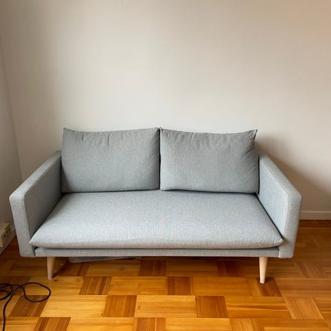 Liten grå soffa i bra skick