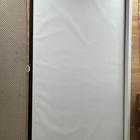 Säljer min 120-tums projektorduk från Elite Screens. Det är en fast ram-duk med svart sammetskant som ger en riktig bioupplevelse. Ingen rullmekanism – alltid redo att användas.