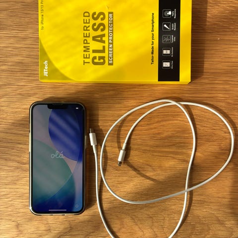 Nu sitter skyddsglass på skärmen. Telefonen har inte en enda repa.