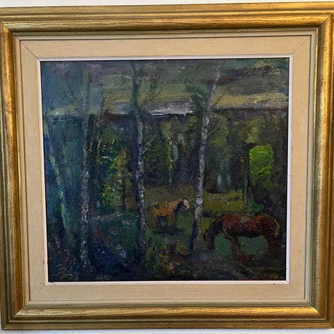 Tavla olja på duk föreställande en skogsmotiv. Fina färger. Oidentifierad konstnär