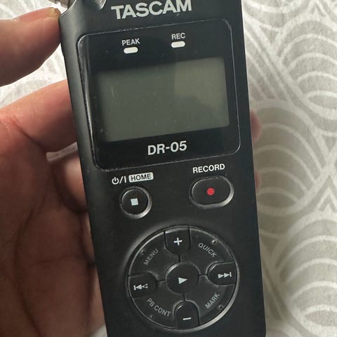Zoom H2 portabel ljudinspelare i silverfärg. Handhållen digital inspelare med inbyggda mikrofoner och frontpanel med display och knappar för styrning av inspelning och uppspelning. Enheten har SD-kortplats för lagring av inspelningar samt anslutningar för USB, line in, mic in och hörlurar. Lämplig för inspelning av tal, musik, intervjuer och fältinspelningar.