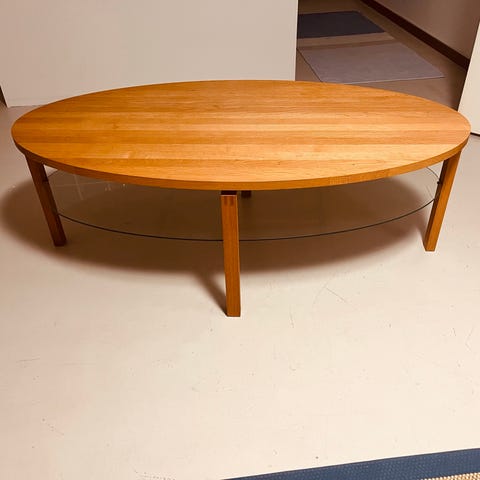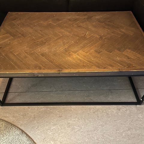 EM möbler soffbord formgivet av Wilhelm Lauritzen. Bordet har en kvadratisk, mörk sten bordsskiva och en underrede/ram i trä med öppen, kubformad konstruktion. Passar som soffbord i vardagsrum eller som större sidobord. Bordets design är rak och enkel med synlig träram under skivan. Bordet är 75x75 cm .
