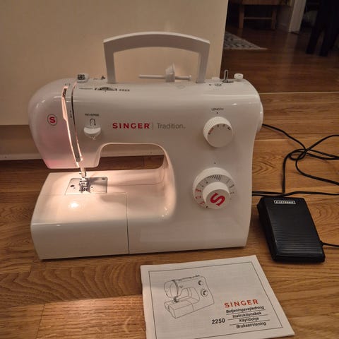 Husqvarna Viking Emerald symaskin. Mekanisk symaskin med flera sömprogram och inställningsmöjligheter via rattar på framsidan. Passar för olika typer av sömnadsarbeten i hemmet, såsom lagning, uppläggning och enklare klädsömnad. Maskinen har friarm för enklare hantering av mindre plagg och detaljer samt inbyggd belysning vid nålområdet.