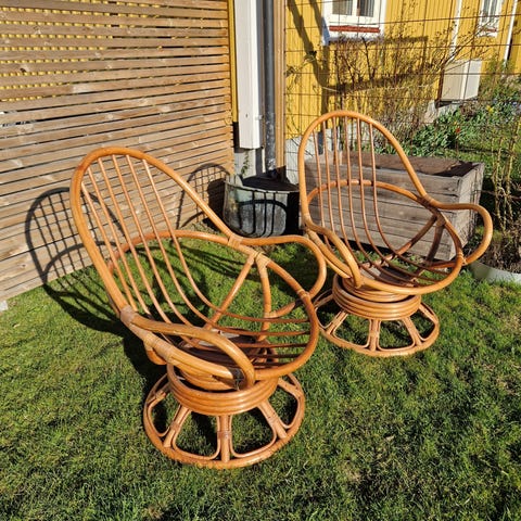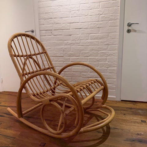 Gungstol i rotting i naturfärg. Stolen har böjd ram och flätad sits och ryggstöd. Passar som sittmöbel inomhus eller i inglasat uterum. Rottingkonstruktionen ger en lätt och luftig känsla samtidigt som gungfunktionen ger en avslappnad sittställning.