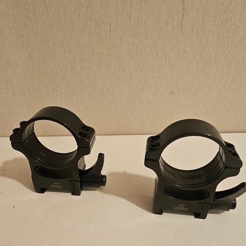 Optik Arms snabbfästen för Picatinny och Weaver. Rekylklacken är lite slipad för att passa weaver bättre. För kikarsikte 30mm och 9mm höga.