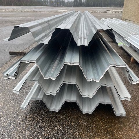 Plåttak i 8 delar använt för hönsgård under 9 månader. Finns därmed en del skruvhål.