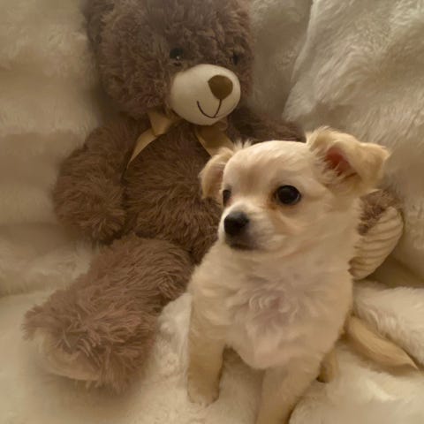 Denna lilla sötnos som är en blandning mellan Långhårig Chihuahua och Papillon är otroligt social, glad och framåt och fullproppad med kärlek.