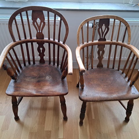 Lindomestolar modell Kättered 4 st tillverkade helt i ek av den siste möbelsnickaren Evert i Hägna för 35 år sedan. Handgjorda av högsta kvalitet, stått lagrade sedan dess, så alltså mycket sparsamt andvända.